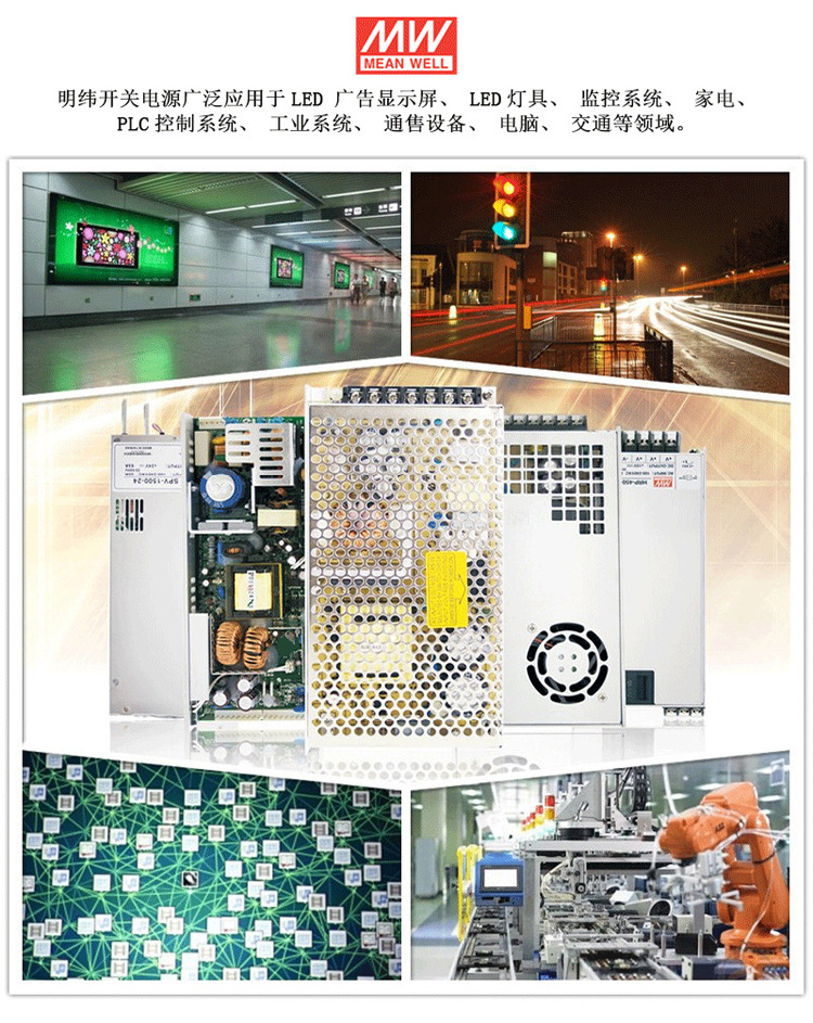 高可靠开关电源机型, 可承受5G震动与70°C高工作环温,全机使用105°C高寿命电解电容,可承受300VAC突波输入达5秒,适合使用于较严苛的工作环境。